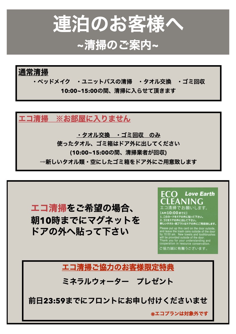 連泊のお客様へ